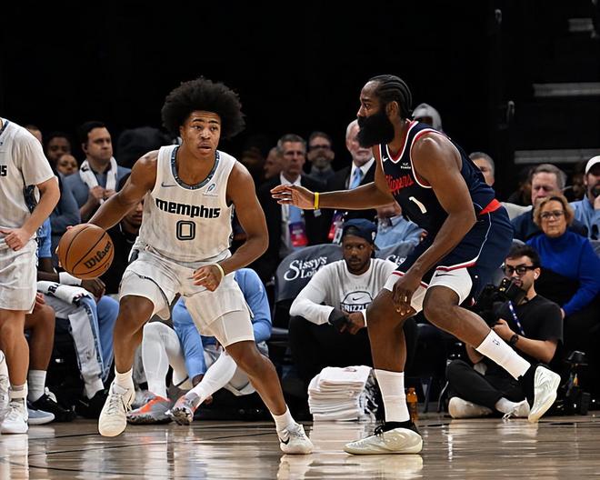 本场比赛中,灰熊的先发侧翼新星杰伦-韦尔斯(Jaylen Wells)的表现算得上是令人刮目相看。韦尔斯全场出场27分16秒,投篮11中7,三分线外5中3,得到了17分3篮板1抢断的数据,还有2次失误和1次犯规,正负值更是达到了全场最高的+19。韦尔斯在进攻端展现出了全面的得分能力,他也是通过各种方式拿下了不少分数,为球队提供了大量的支持,起到了不小的作用。最关键的是,韦尔斯在防守端的表现算得上是可圈可点,他简直是锁死了快船的后场核心詹姆斯-哈登(James Harden),导致了哈登只能打出非常平庸的表现。韦尔斯在场上时球队的局面一片大好,这也能够体现在他超高的正负值上。毫无疑问。韦尔斯在攻防两端的一系列出色表现也是球队能够战胜对手的关键因素。